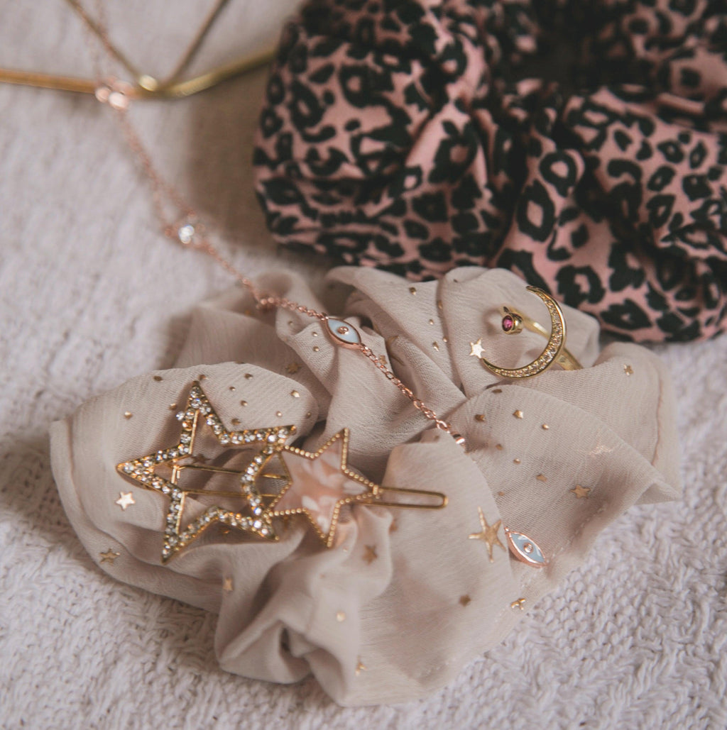 Demi Star Hair Scrunchie - Taupe - Luna Charles | hair accessories, scrunchie, sparkle, Star |