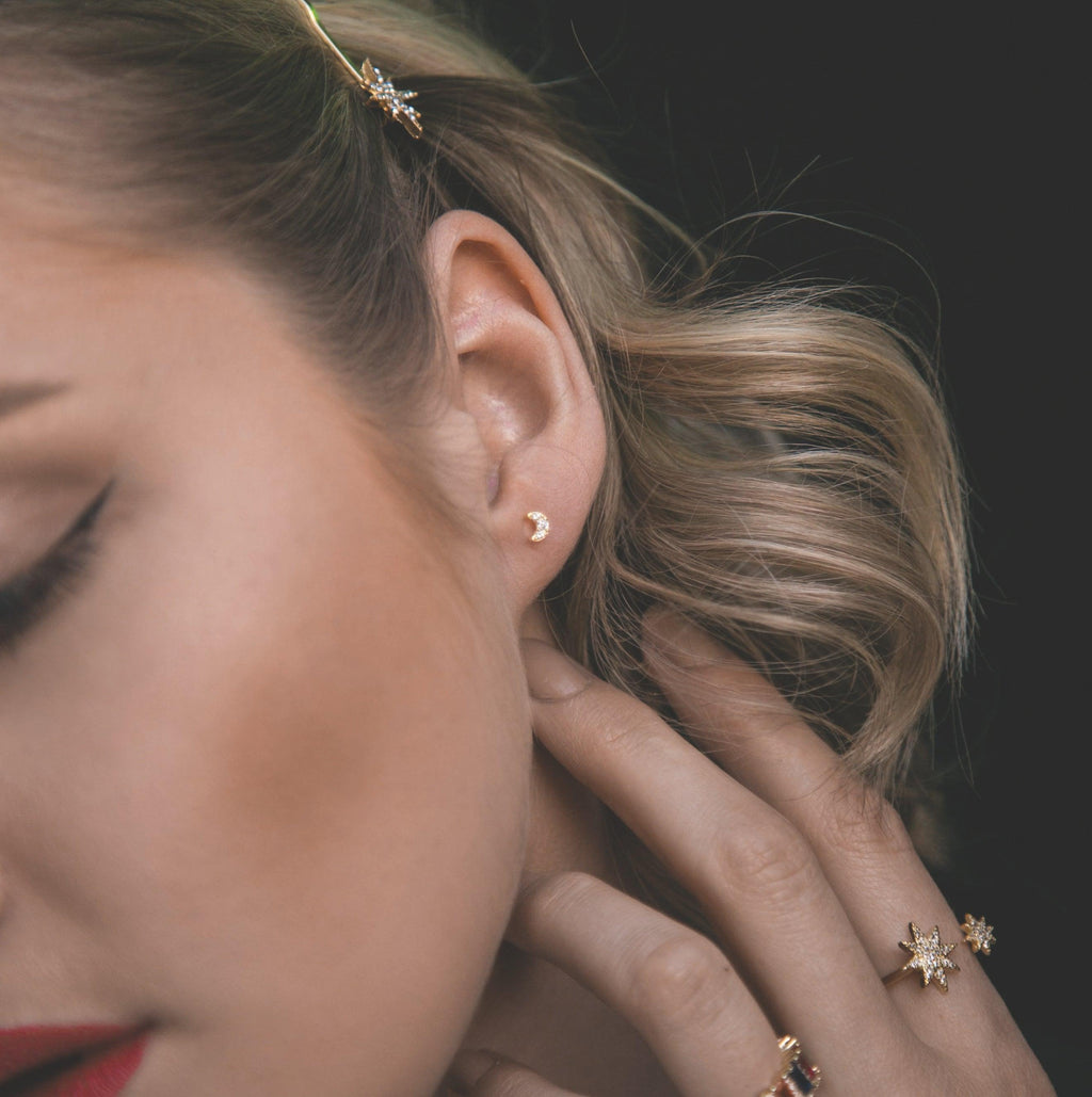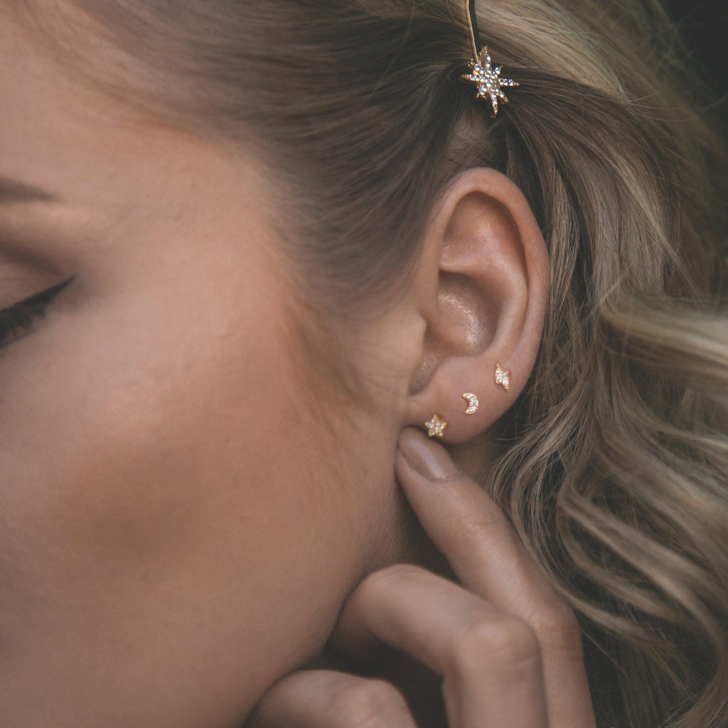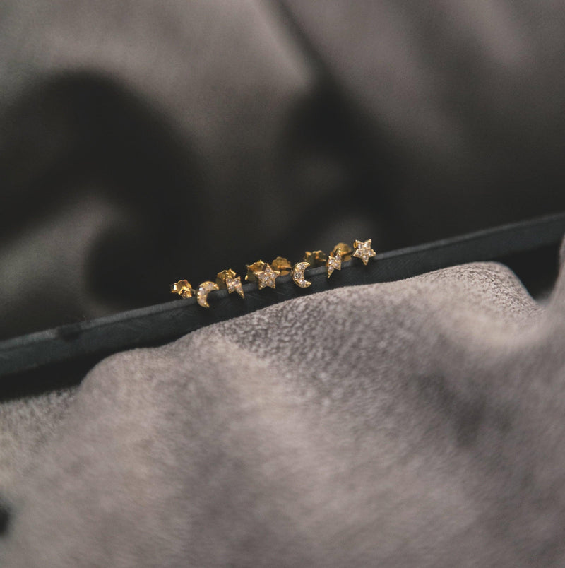 Never stop looking up to the sky with our pretty little set of charm studs. Perfect for layering or mixing & matching.