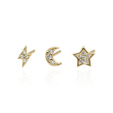 Miku Lightning, Moon & Star Stud Earrings Set | 18K Gold Plated