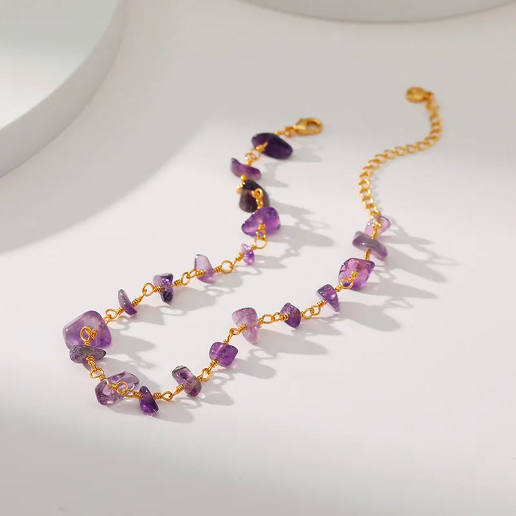 Ula Crystal Stone Anklet - Amethyst | 18K Gold Plated